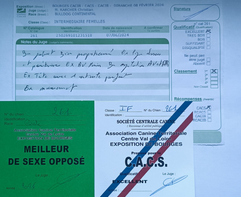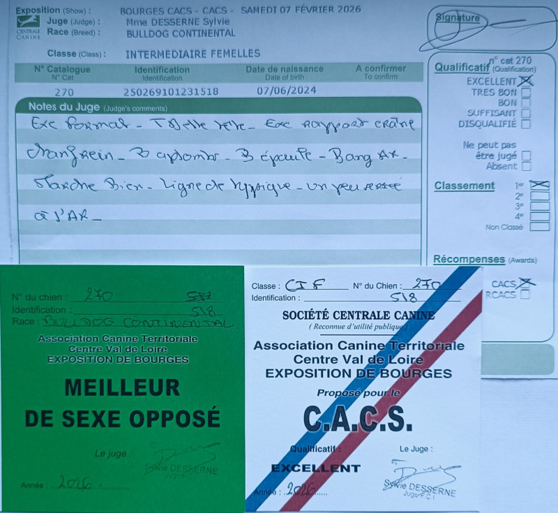 - 1er exclellent CACS + meilleur de sexe opposé exposition internationale Bourges Février 2026
