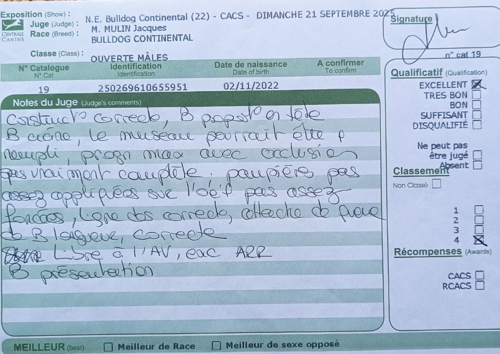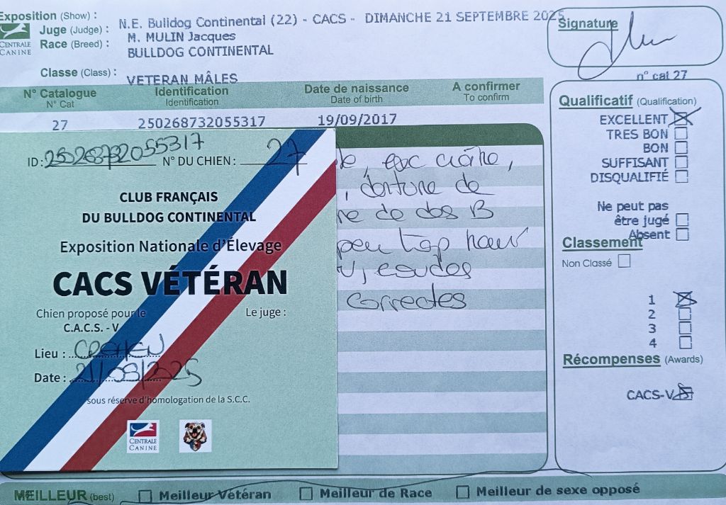 1ER EXCELLENT CACS ET MEILLEUR DE SEXE OPPOSE